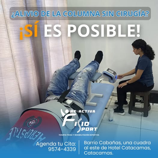 Alivia el dolor y mejora tu calidad de vida con tratamientos especializados para: 🦴 Ciática 🦴 Hernias discales 🦴 Espondilosis cervical 🦴 Dolor crónico 🦴 Dolor de espalda y cuello ✨ Una terapia efectiva que ayuda a reducir la presión, aliviar el dolor y recuperar tu movilidad de forma segura.